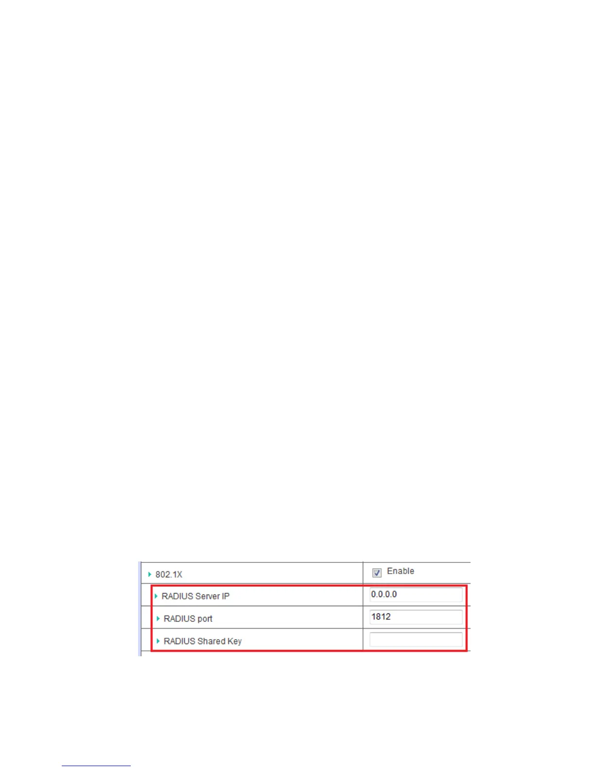 RADIUS server for user authentication. You need to input IP address, port,