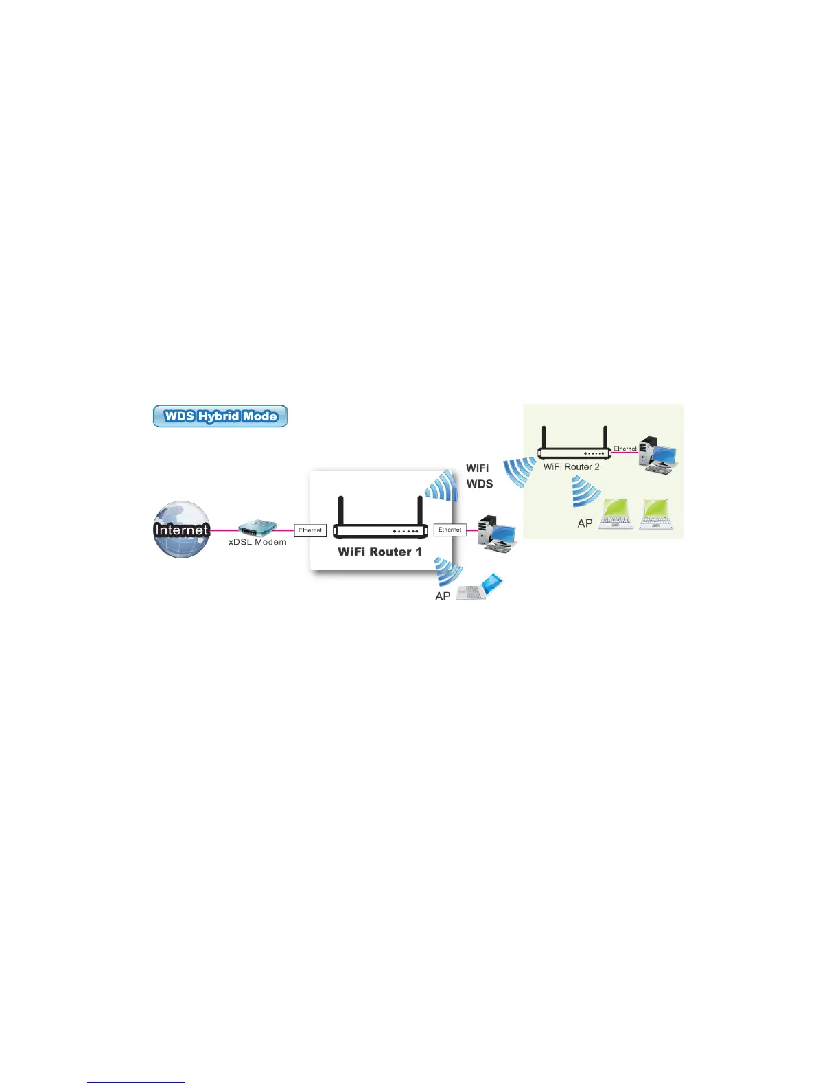 acting as a wireless Bridge, Wireless Router 1 and Wireless Router 2 can
