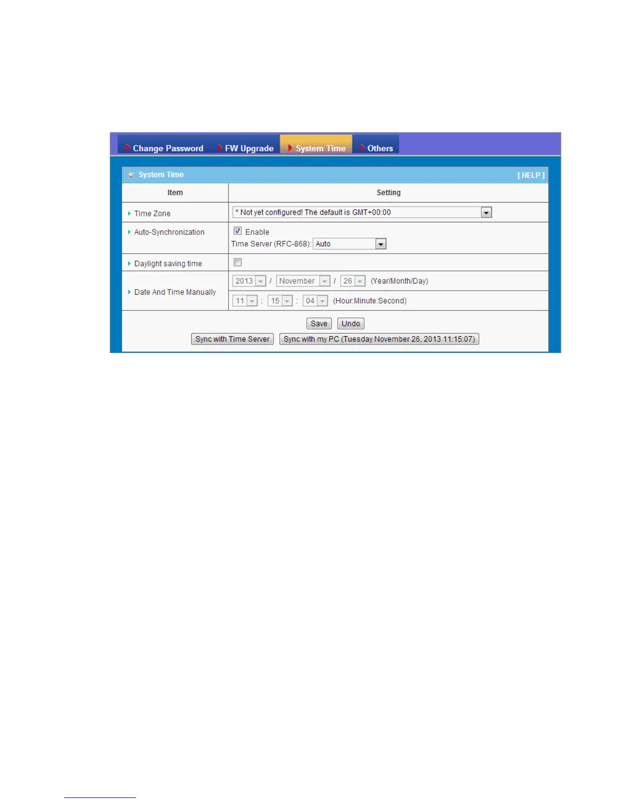 3. Sync with Time Server: Click on the button if you want to set Date and Time by