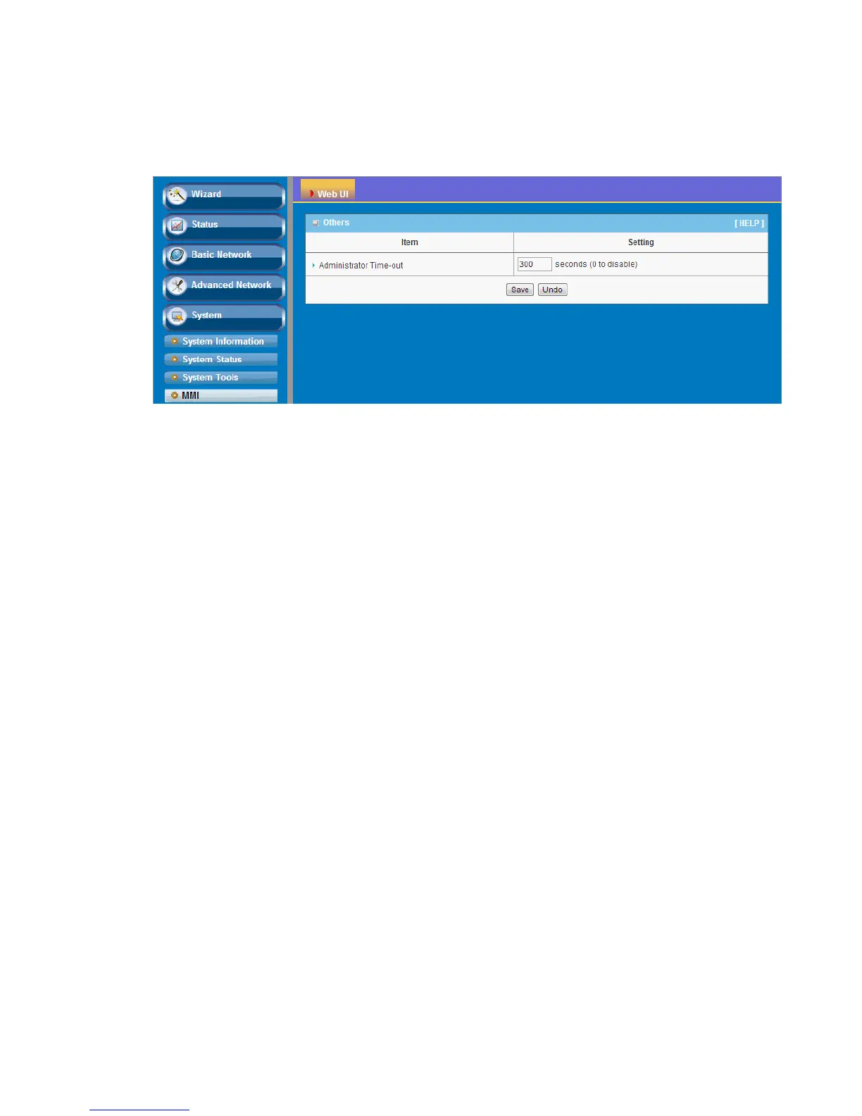 You can set UI administration time-out duration in this page. If the value is “0”, means