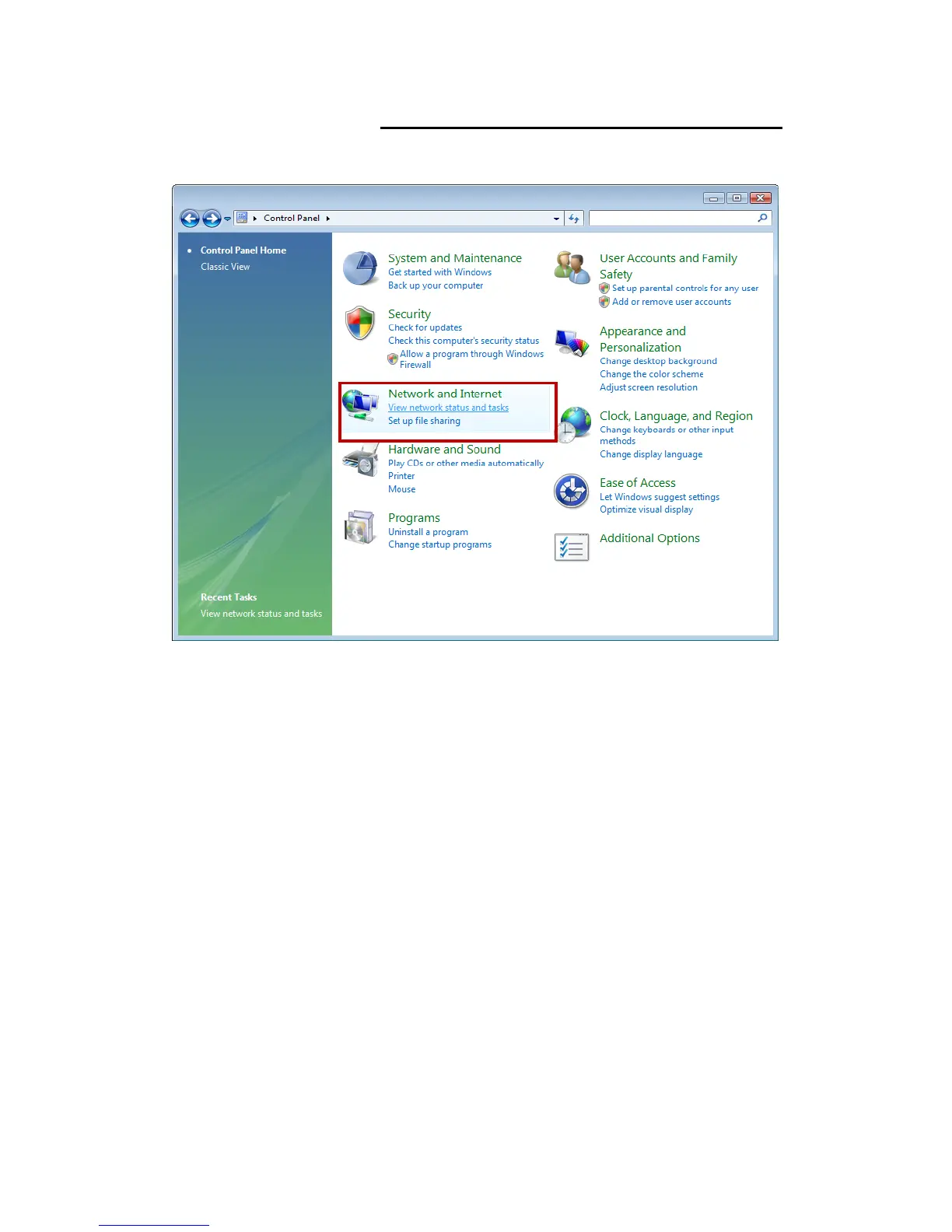 1. Click on Start-> Control Panel-> View network