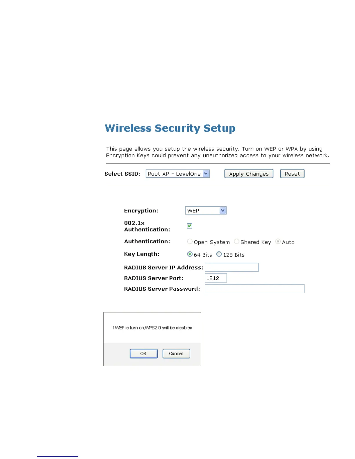 3. Click on the ratio of WEP 64bits or WEP 128bits.