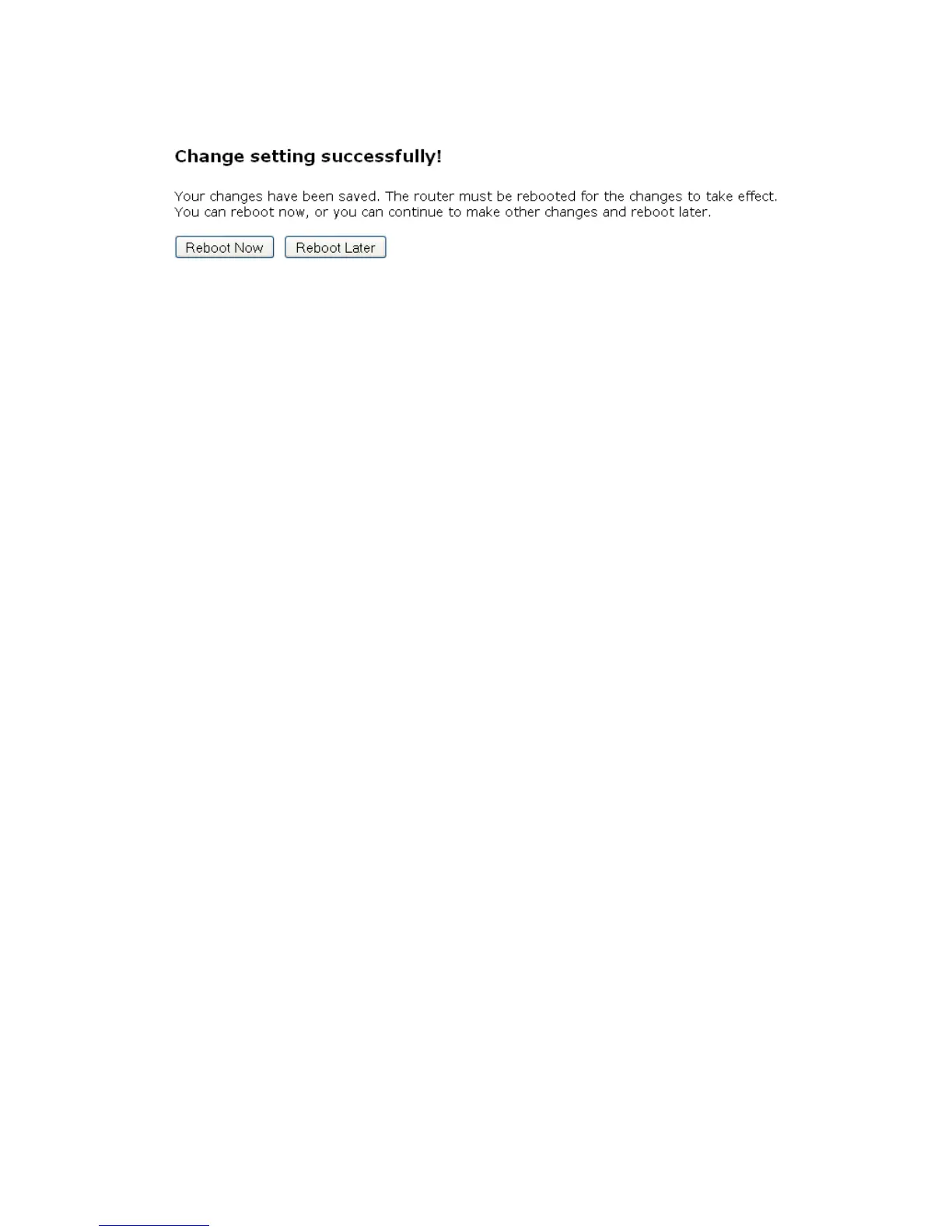 7. Change setting successfully! Click on Reboot Now button to