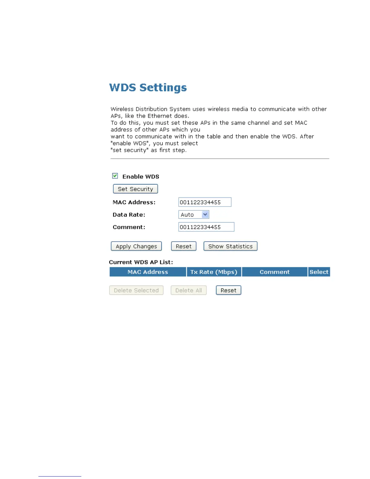 7. Check on the option Enable WDS.