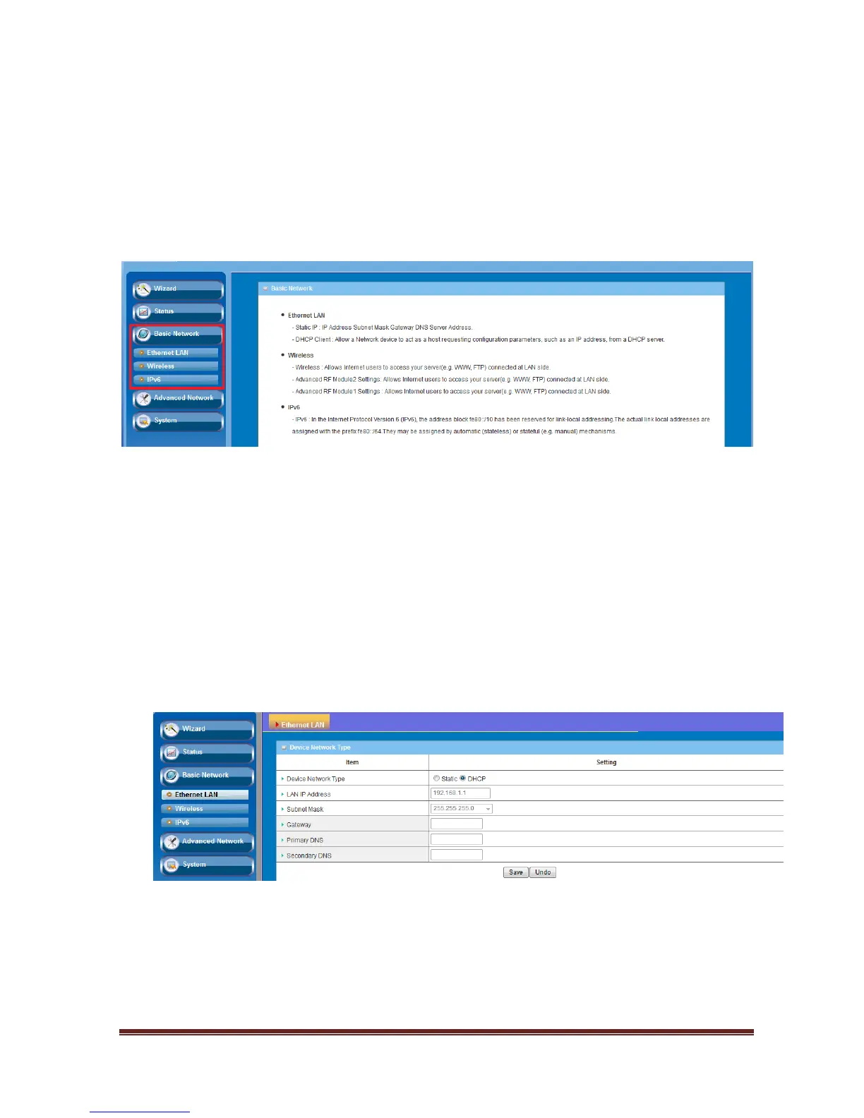You can enter Basic Network for Ethernet LAN and Wireless settings as the icon here