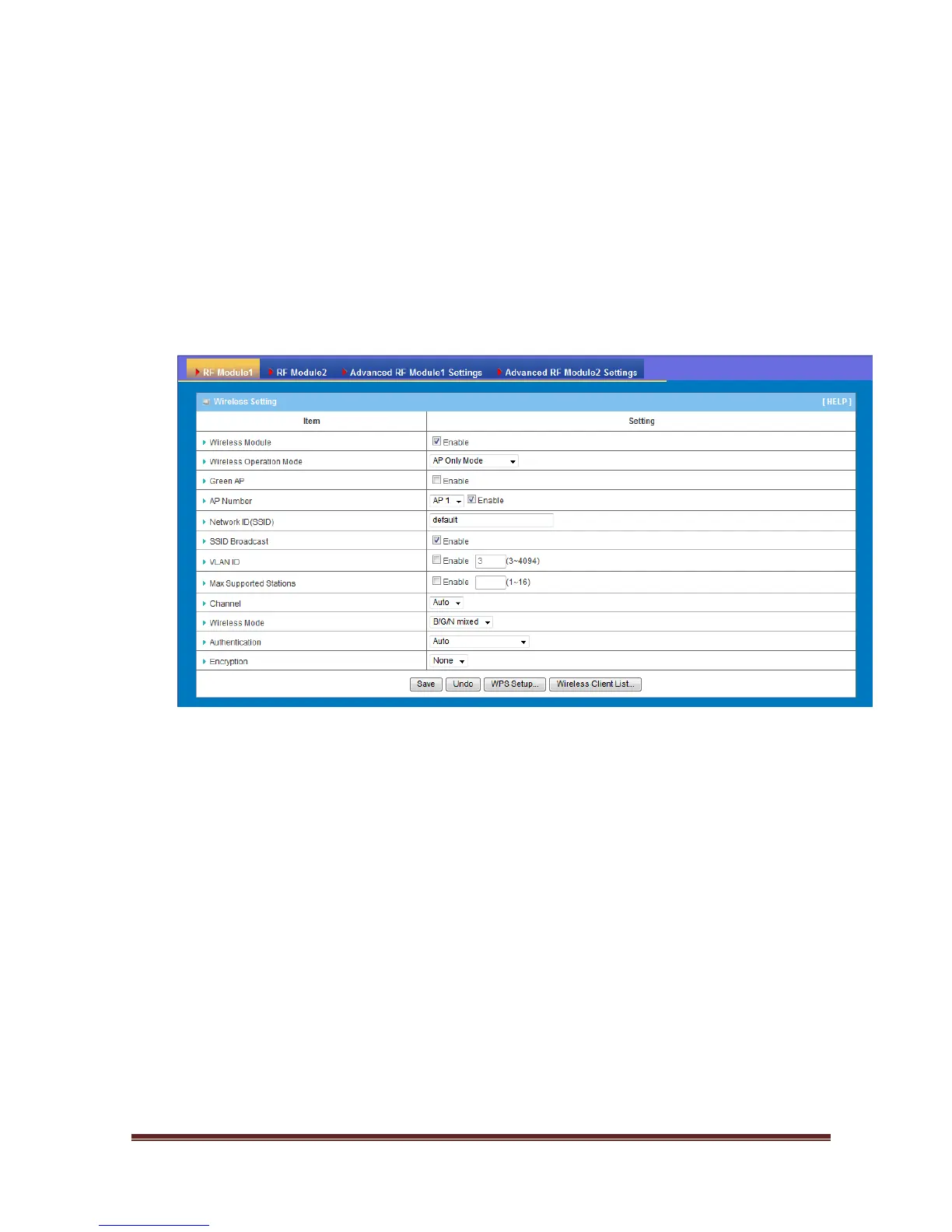 Wireless settings allow you to set the WLAN (WiFi) configuration items. When the