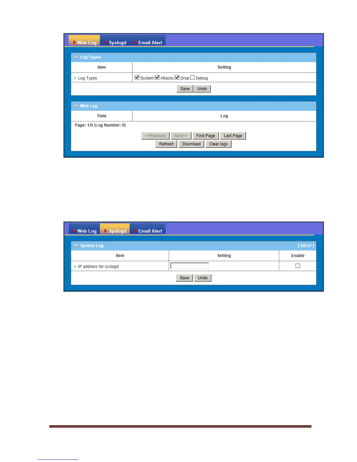 (UDP) and SMTP(TCP). With enabled Syslog function, this device will send log to a
