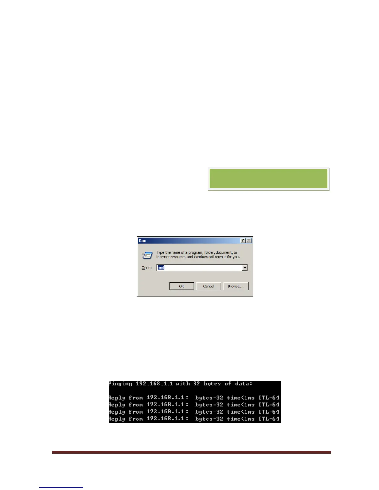 4. Type “ping 192.168.1.1”. Assure that you ping the correct IP Address