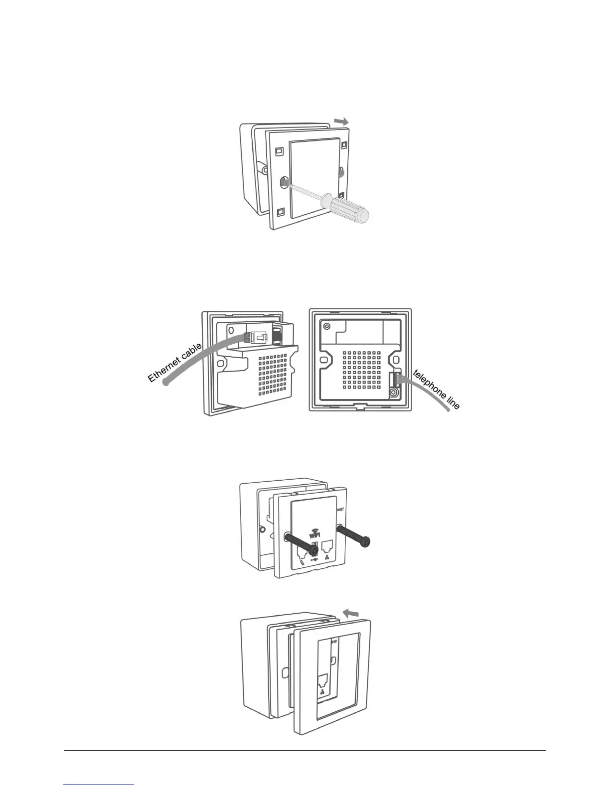 2. 分别将电话线和上层设备(如:PoE 交换机)上的网线连接 AP 背面的 RJ11