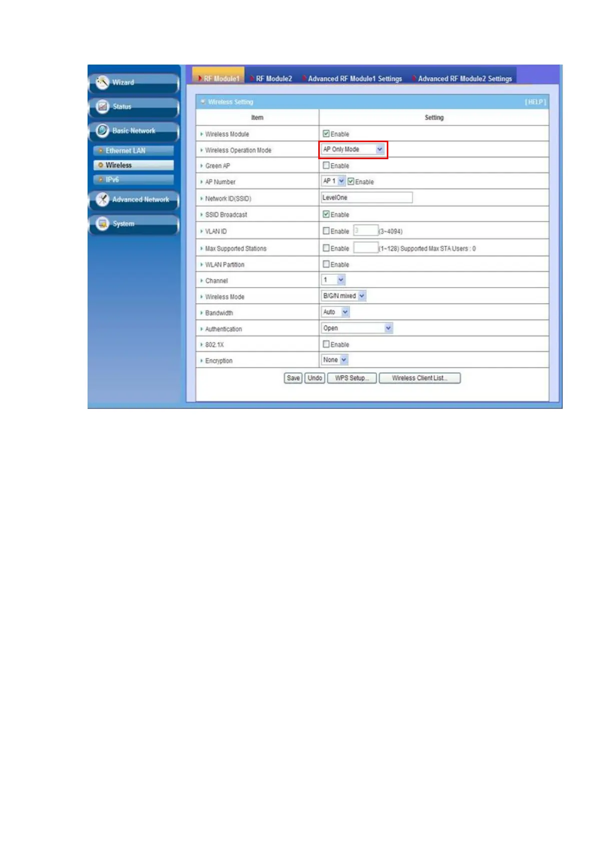 2. Wireless Operation Mode: Choose “AP Only Mode” from the list.