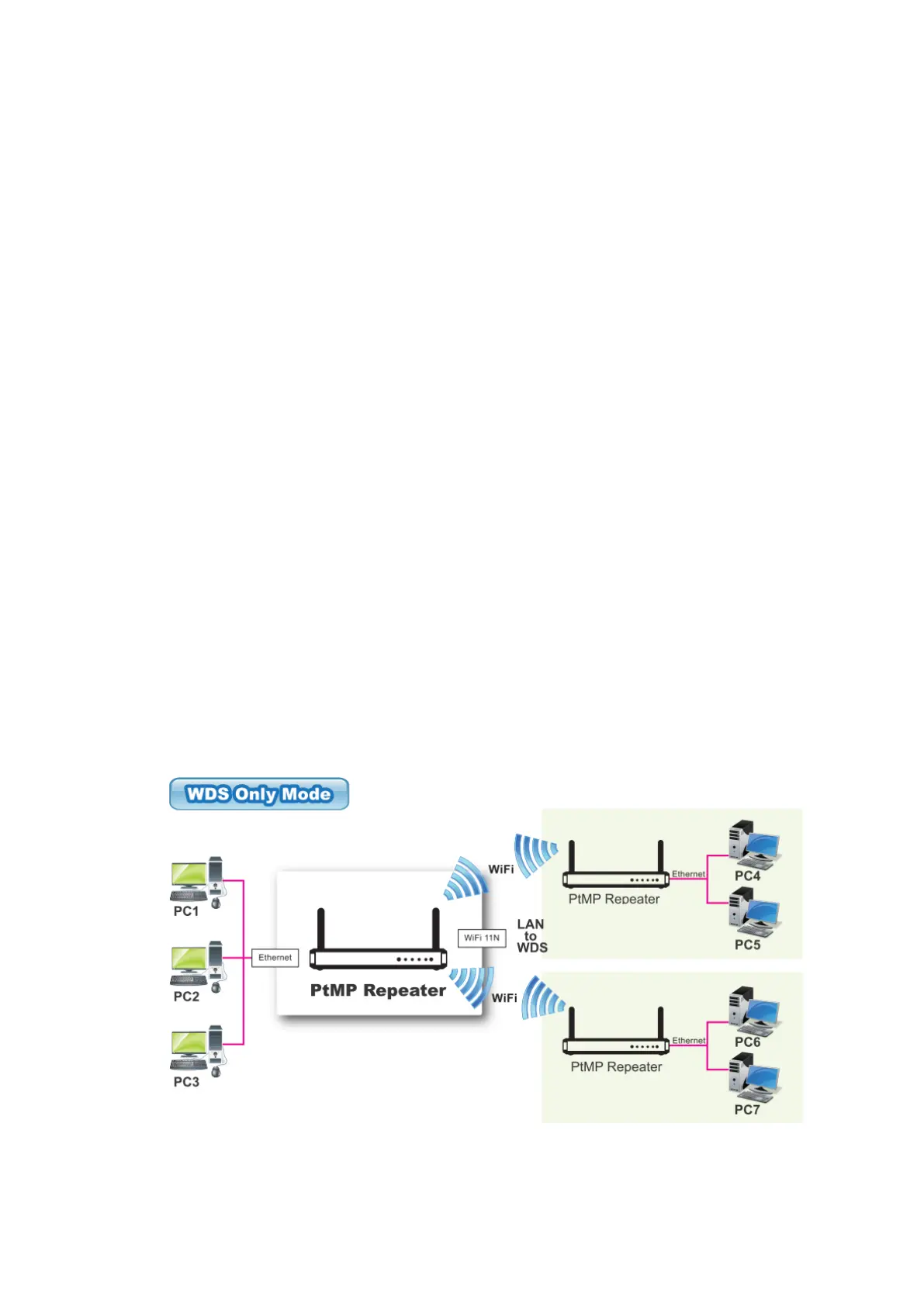WDS (Wireless Distributed System) function let APs acts as a wireless LAN bridge.