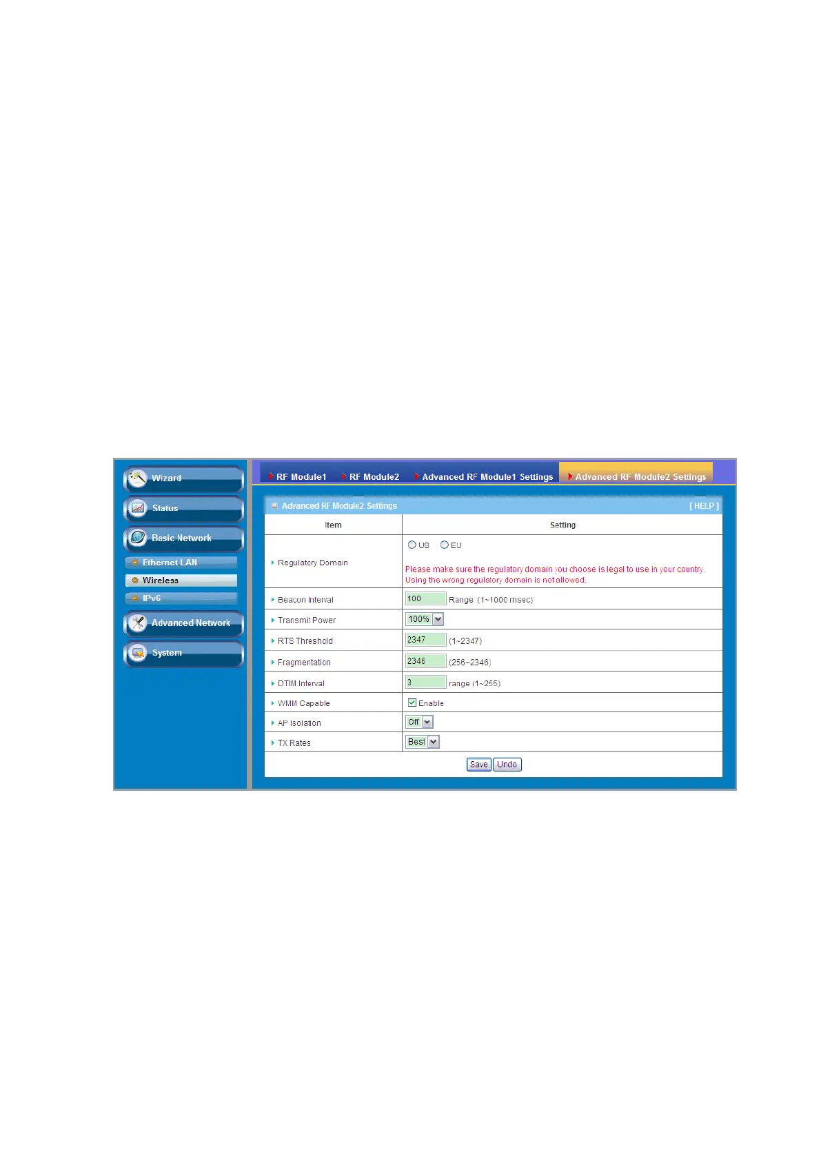 3. Transmit Power: Normally the wireless transmission power operates at 100% out