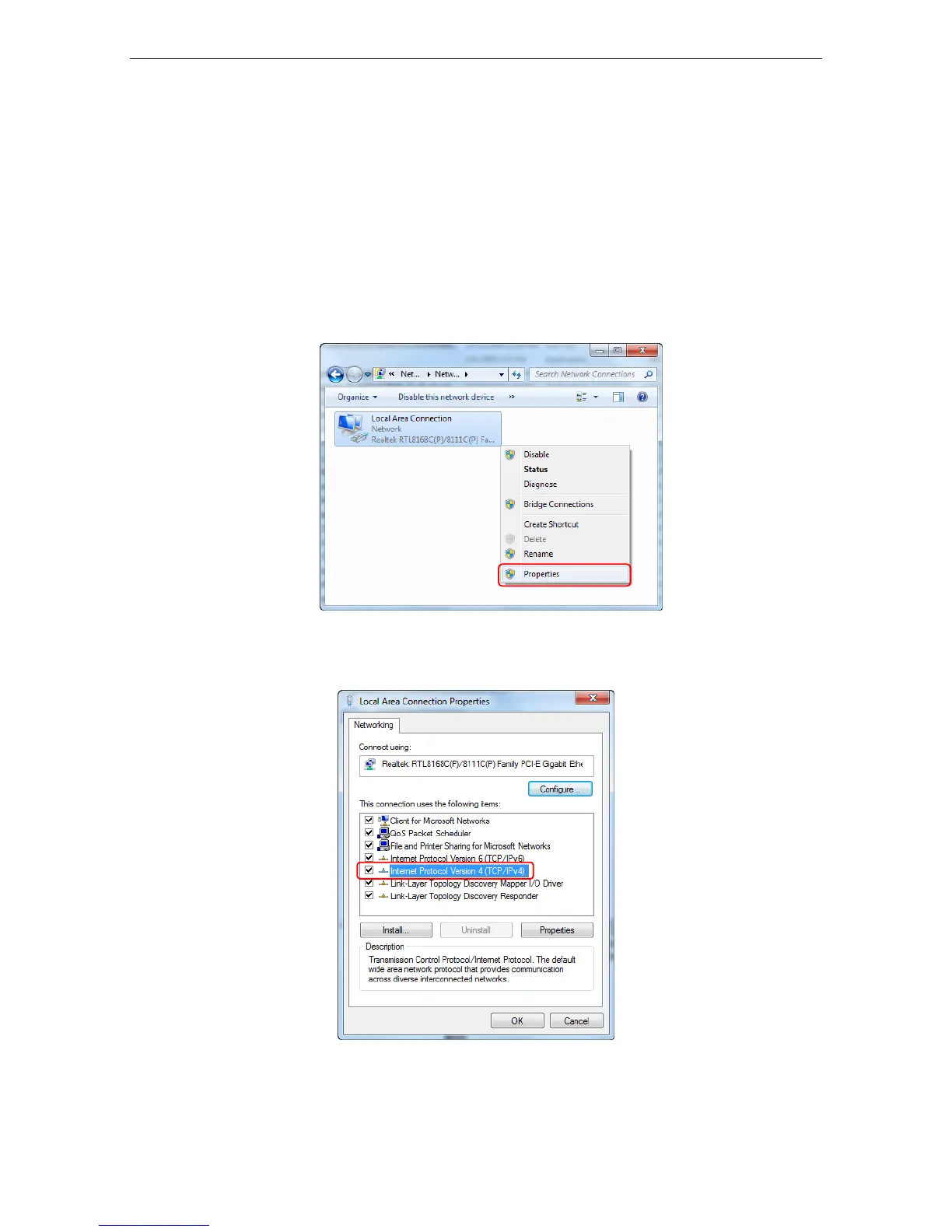 Configure the PC’s local connection IP address as 192.168.188.X (X is number from 2 to 252), subnet mask is
