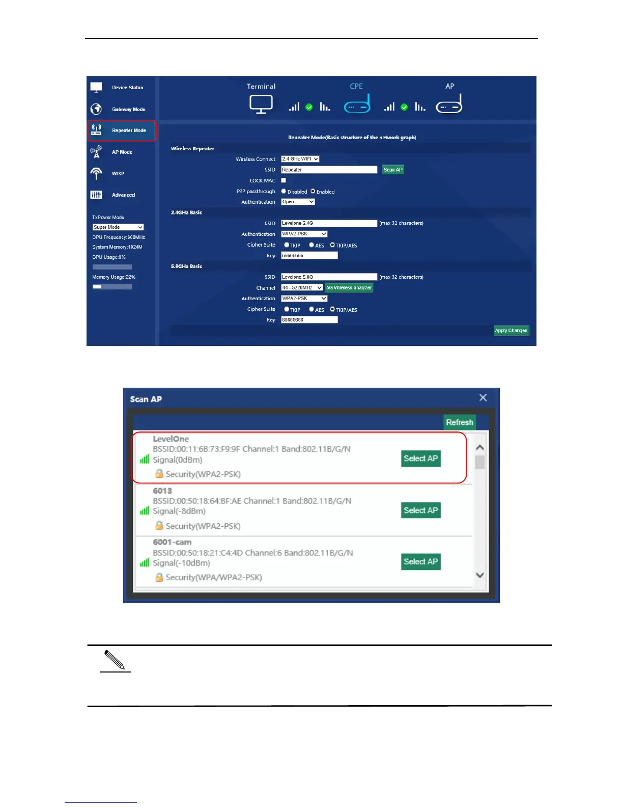 B. Select the AP’s SSID want to bridge, take LevelOne for example.
