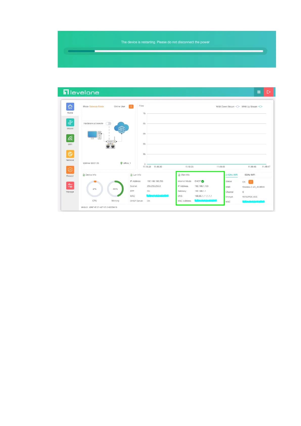 5. This page will show the connection DHCP status