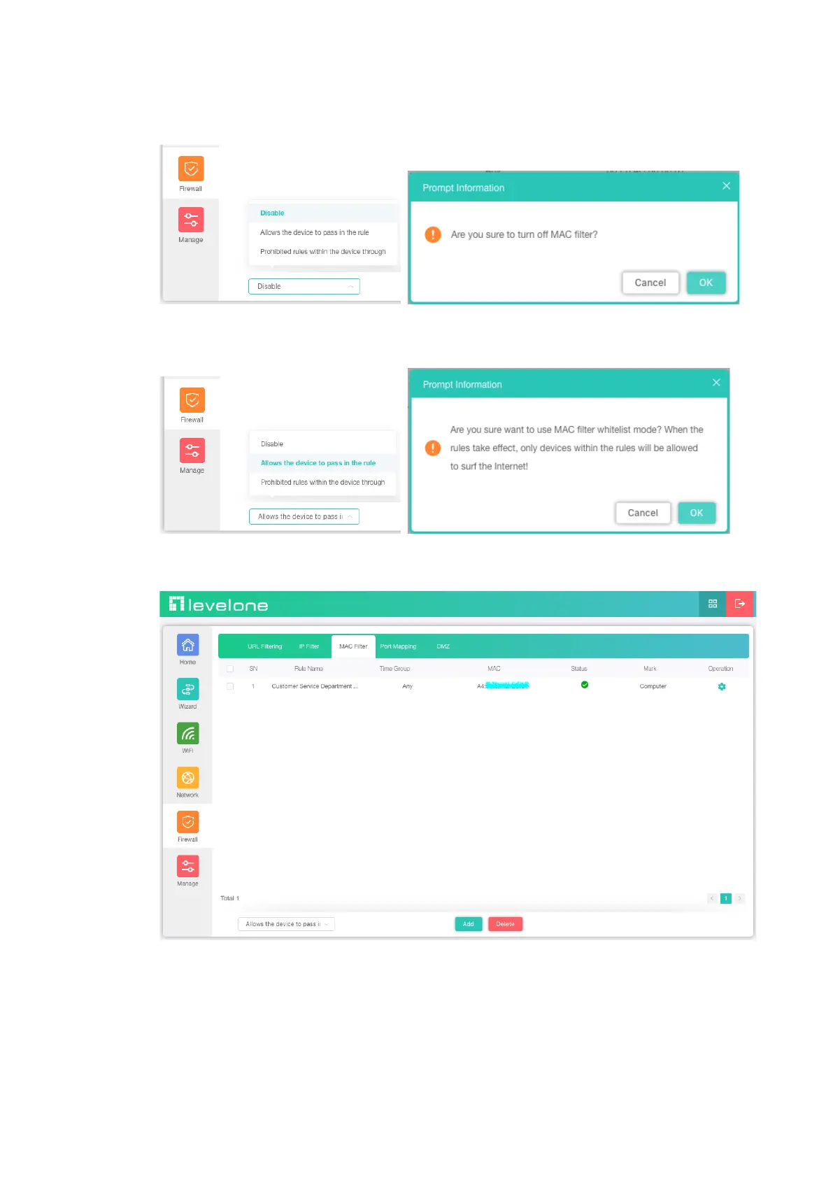l When the rules take effect, only devices within the rules will be allowed to surf the Internet