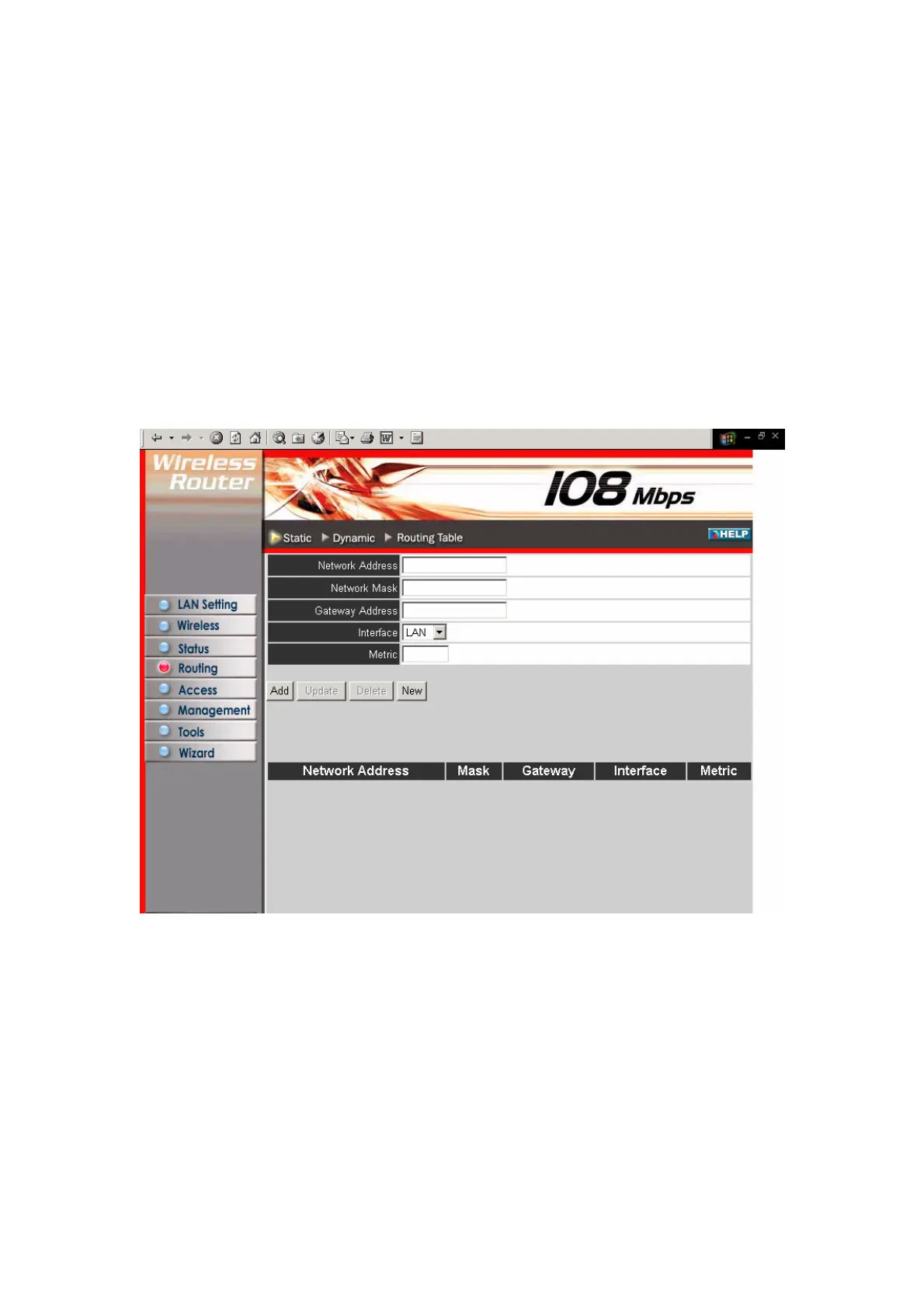 This selection enables you to set how the router forwards data: Static and Dynamic.