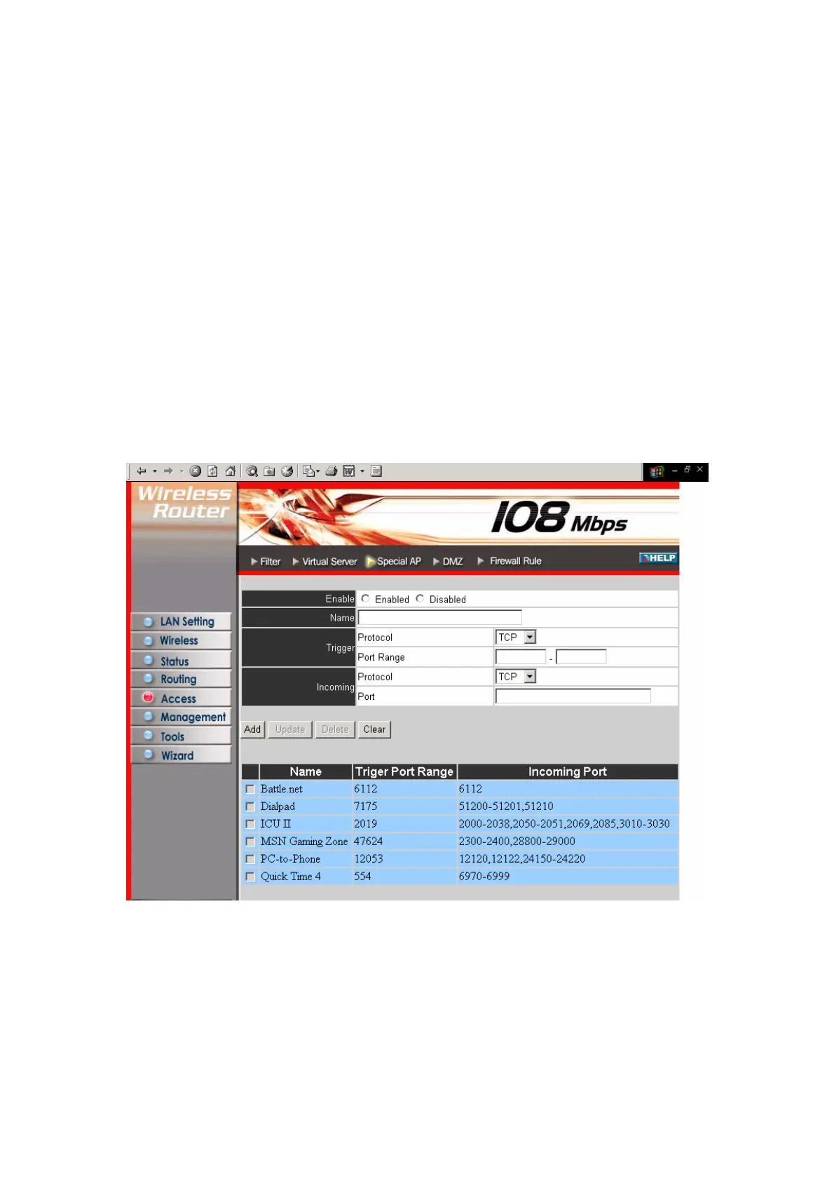 multiple connections that are inhibited by NAT. The special applications profiles are