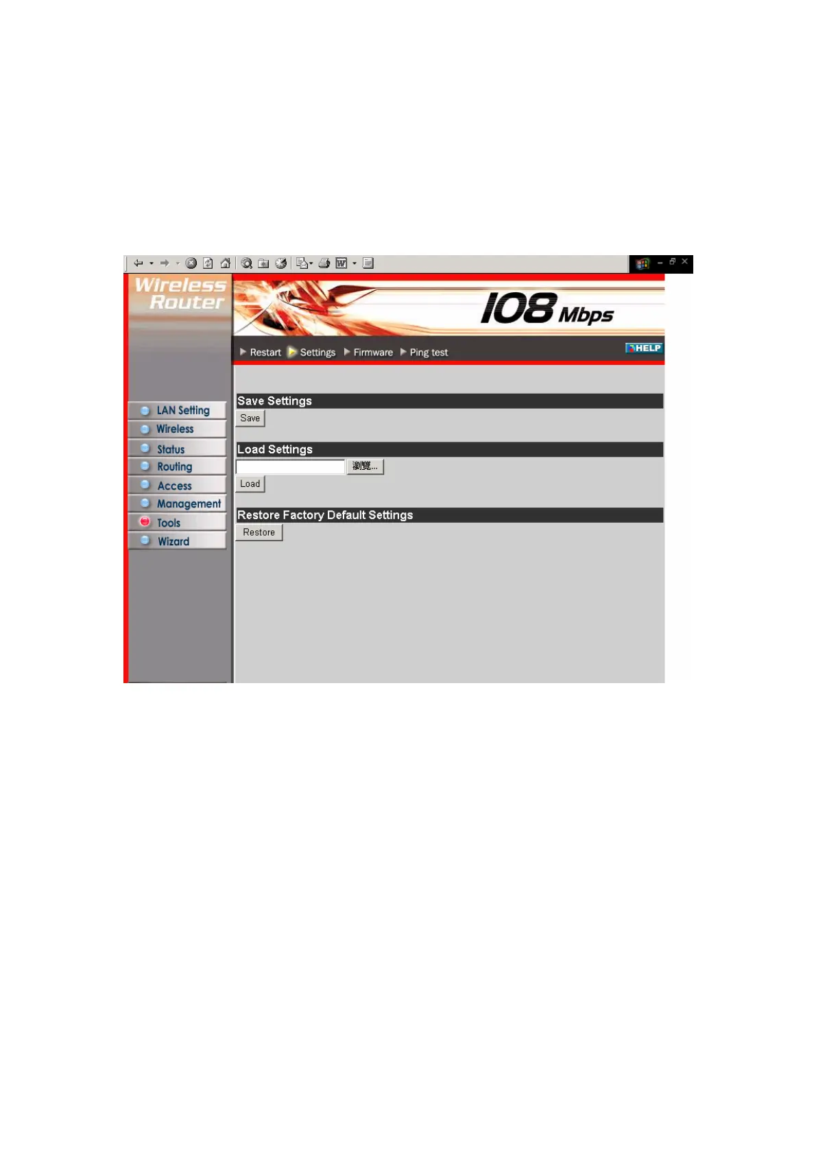 Restore Factory Default Settings: Click to restore the default settings. All
