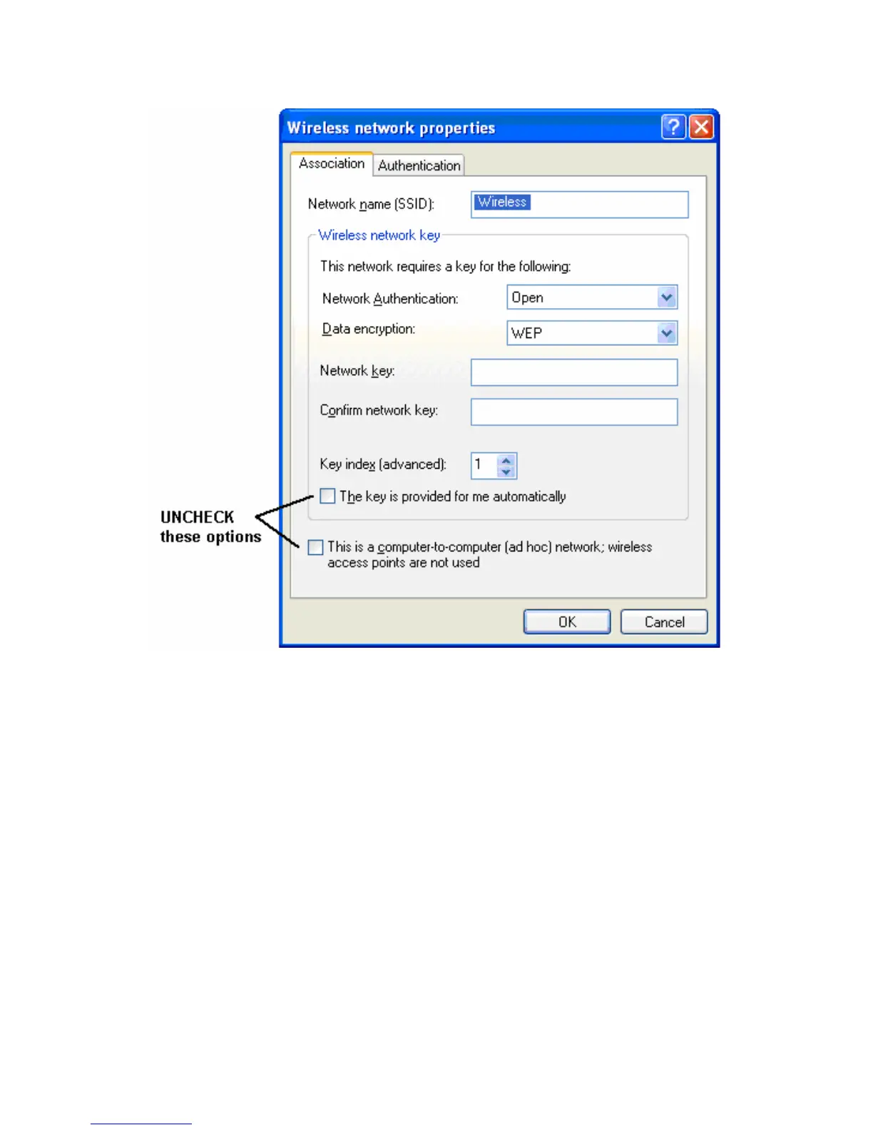 This is a computer-to-computer (ad hoc) network are unchecked.