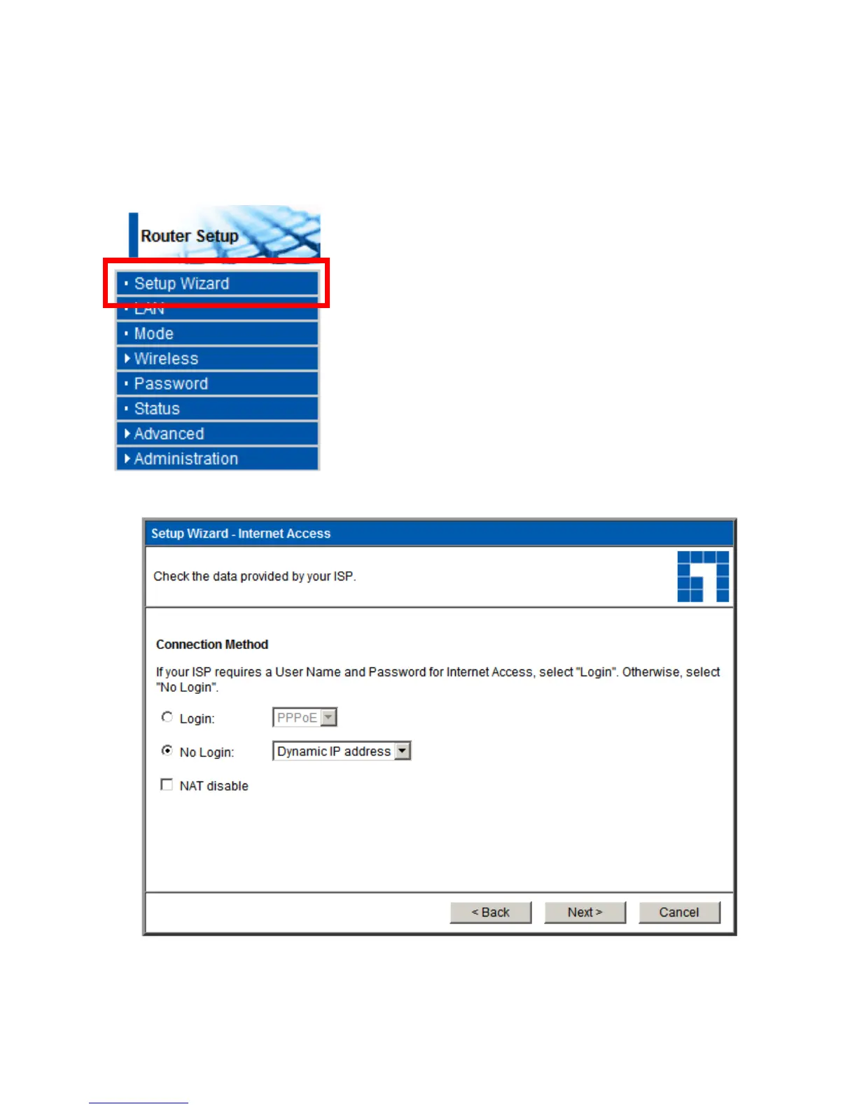 5. Installer ruteren ved at klikke på Setup Wizard