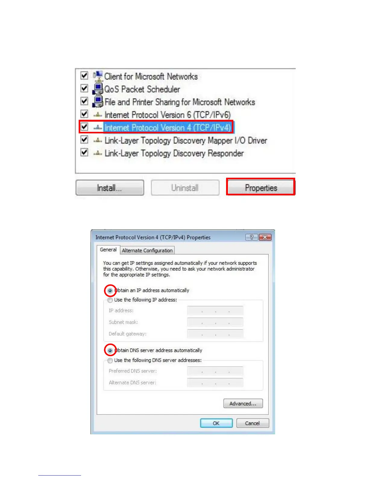 Internet (TCP/IP)) et cliquez sur [Properties] (propriés)