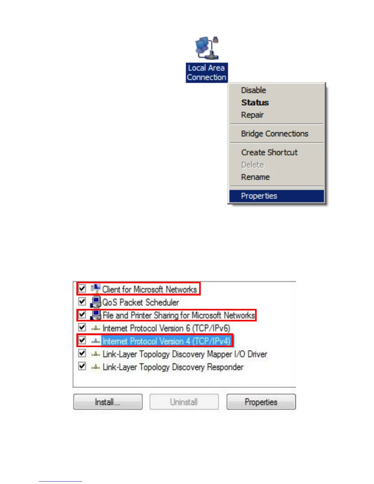 4. Verificare che le voci Client for Microsoft Networks (Client