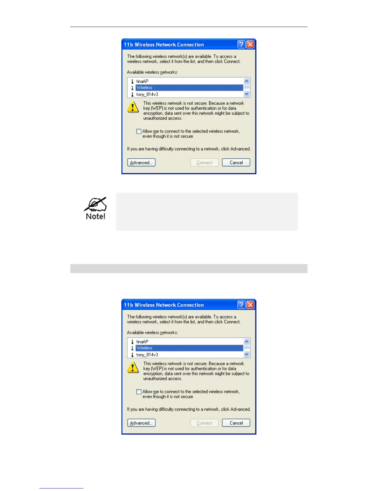If Wireless security on the Wireless Router is disabled, Windows will warn you that