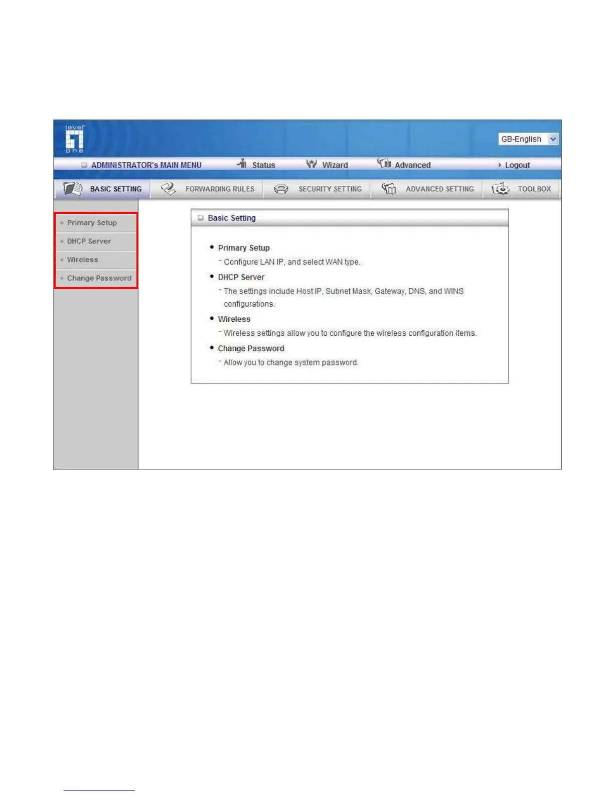 These are the basic settings of the unit. Click on the menu on the left to access the respective