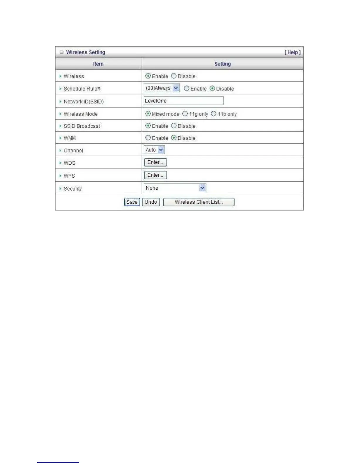 Wireless: Enabled by default. Disabling this will turn off the wireless feature of this unit.