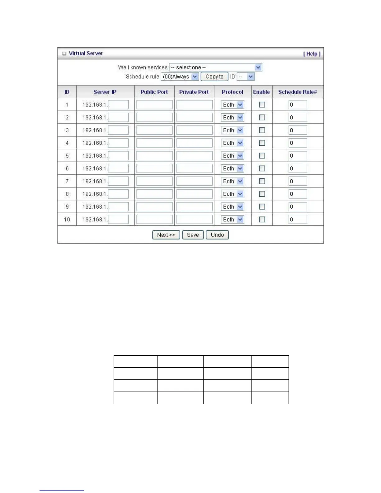 computer specified by the Server IP. Virtual Server can work with Scheduling Rules, and give user