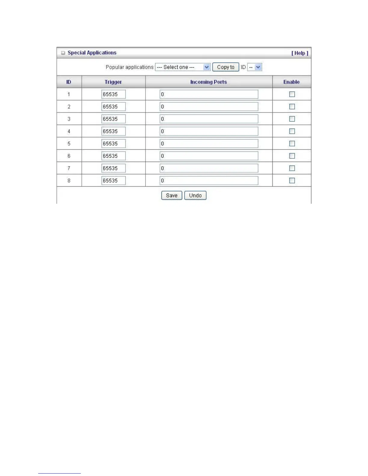 The WBR-6003 also comes with predefined settings for some popular applications. To use the