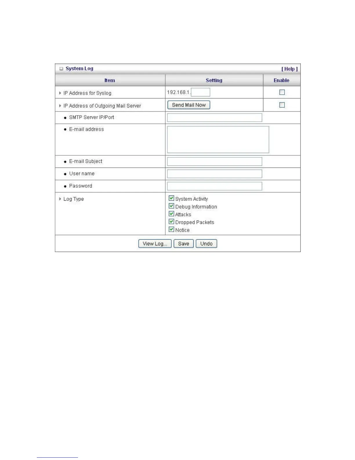 • Sent E-Mail Alert to: Enter the e-mail addresses of the recipients for the email logs. To assign