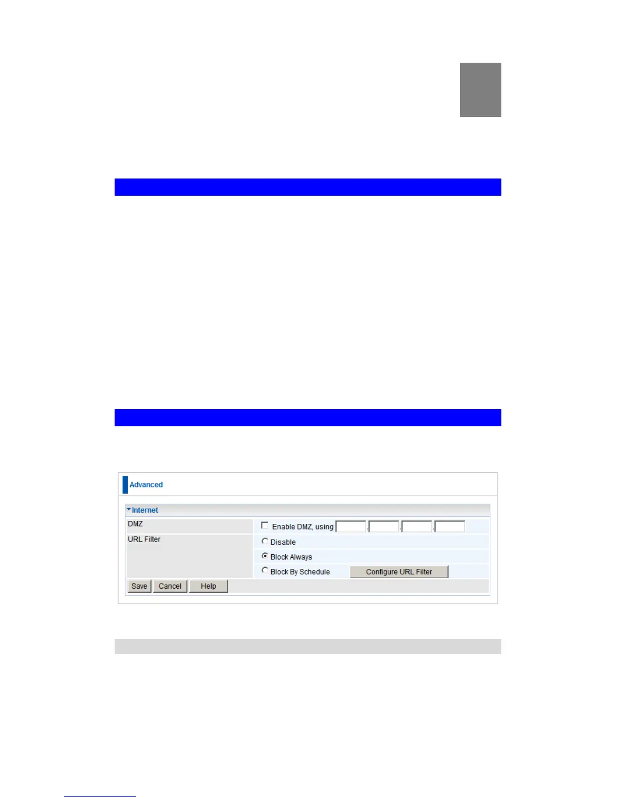 This screen provides access to the DMZ, Special Applications and URL Filter