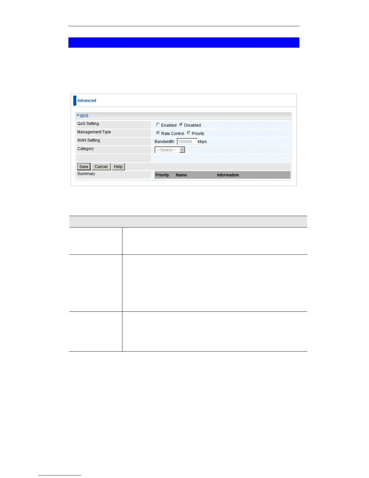 Disable. To enable QoS (Quality of Service), click Enable and