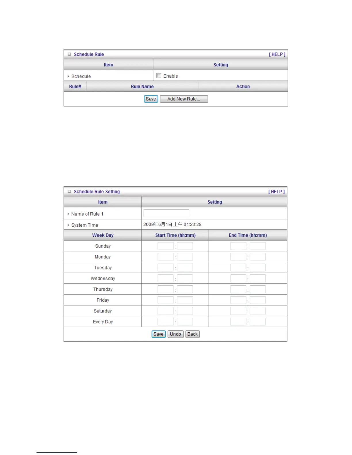 “End Time”. The following example configure “ftp time” as everyday 14:10 to 16:20
