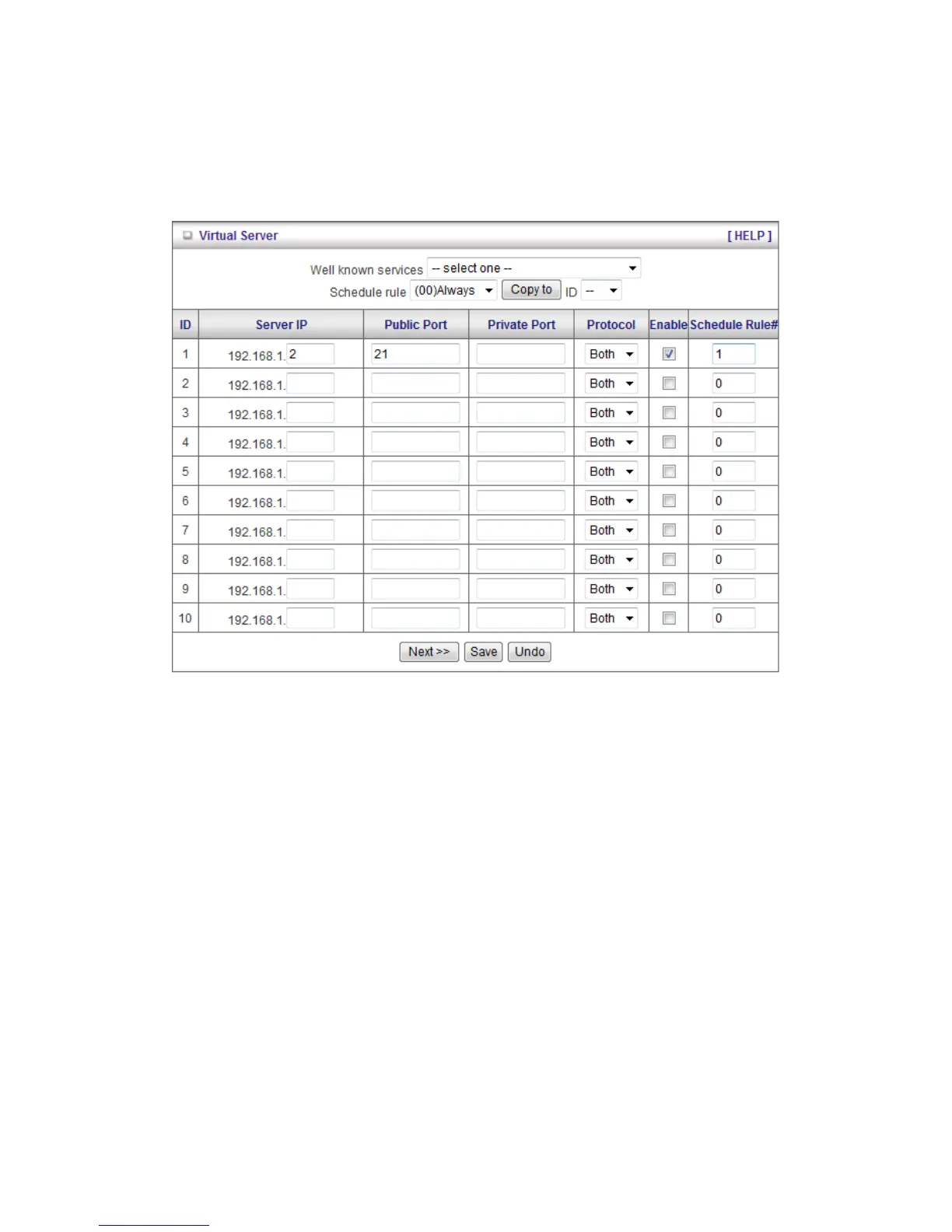 Schedule Rule can be apply to Virtual server and Packet Filter, for example: