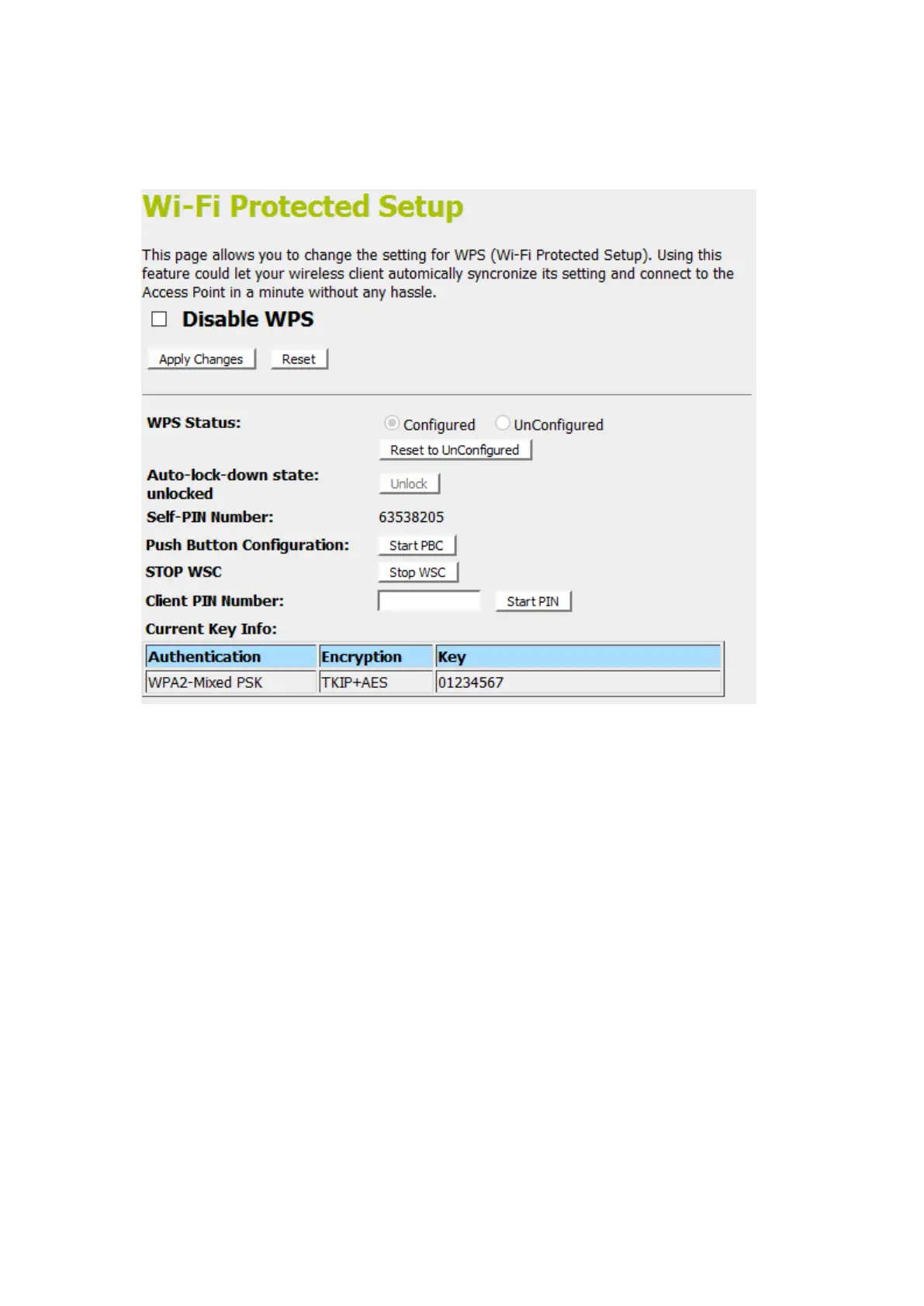 17. Finally, AP will become configured (see WPS Status). The