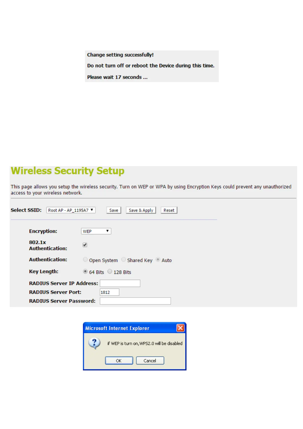 3. Click on the ratio of WEP 64bits or WEP 128bits.