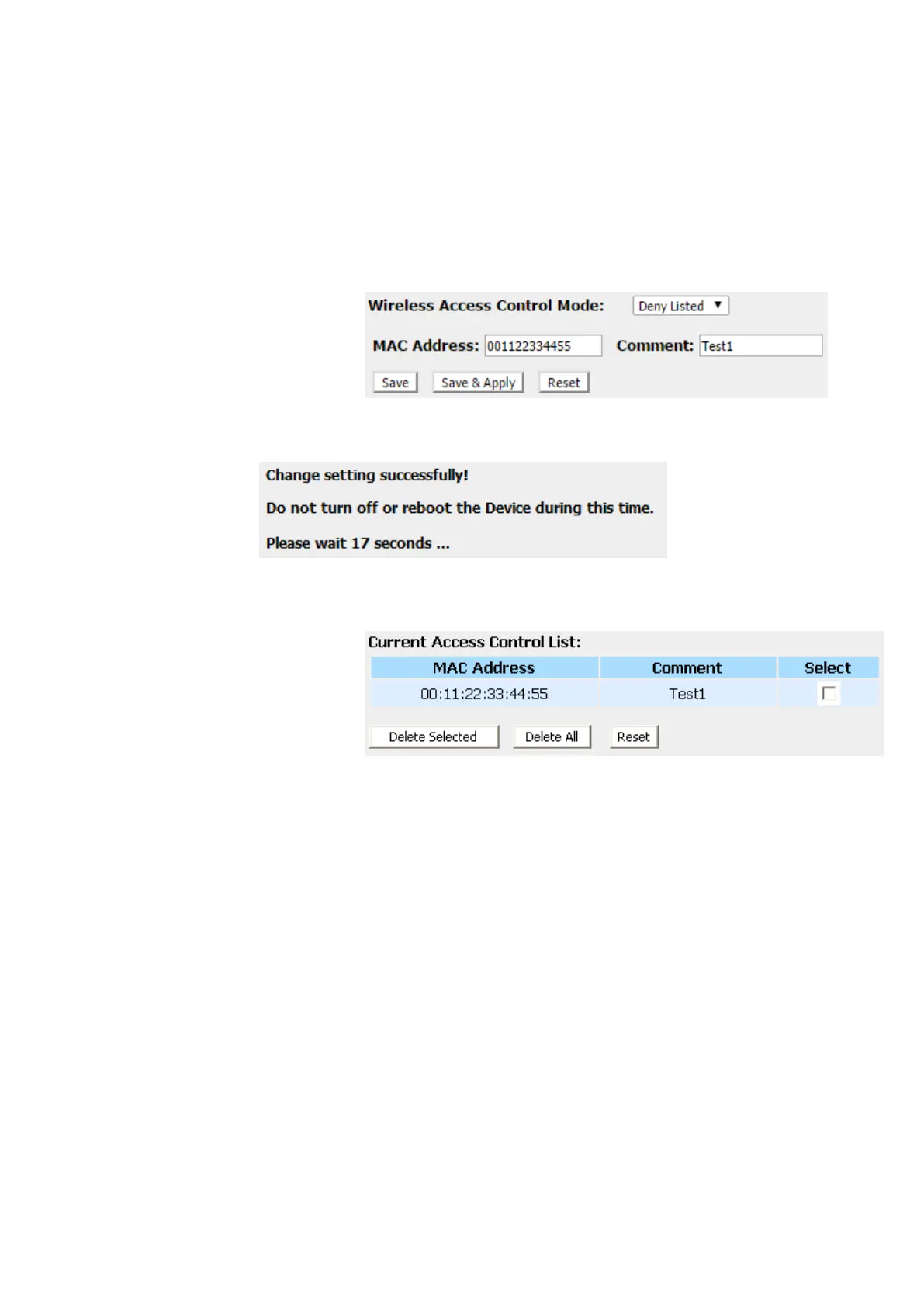 When 'Deny Listed' is selected, these wireless clients on the list