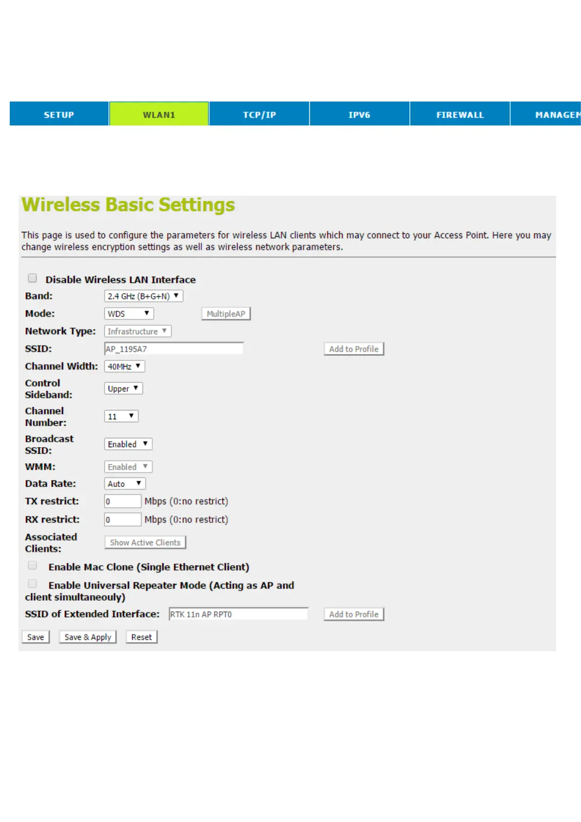 1. From the head menu, click on WLAN1.