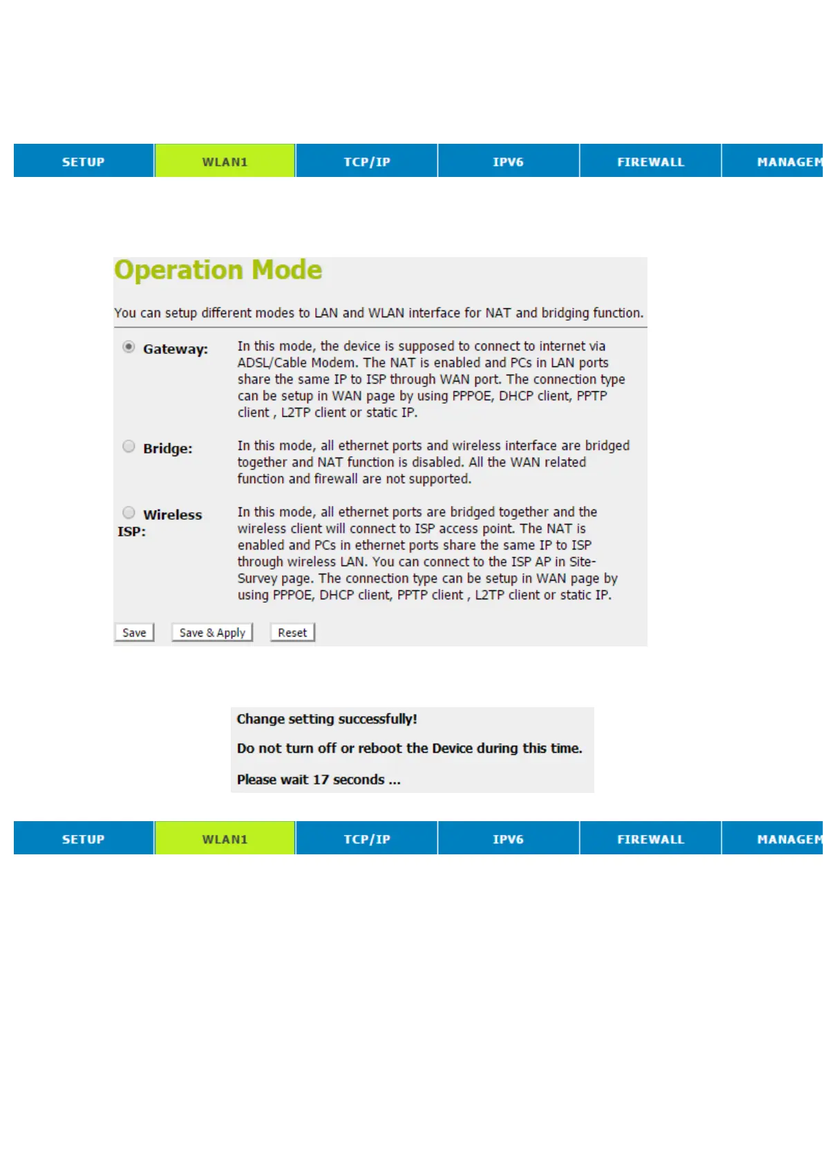 6. Change setting successfully! Do not turn off or reboot the