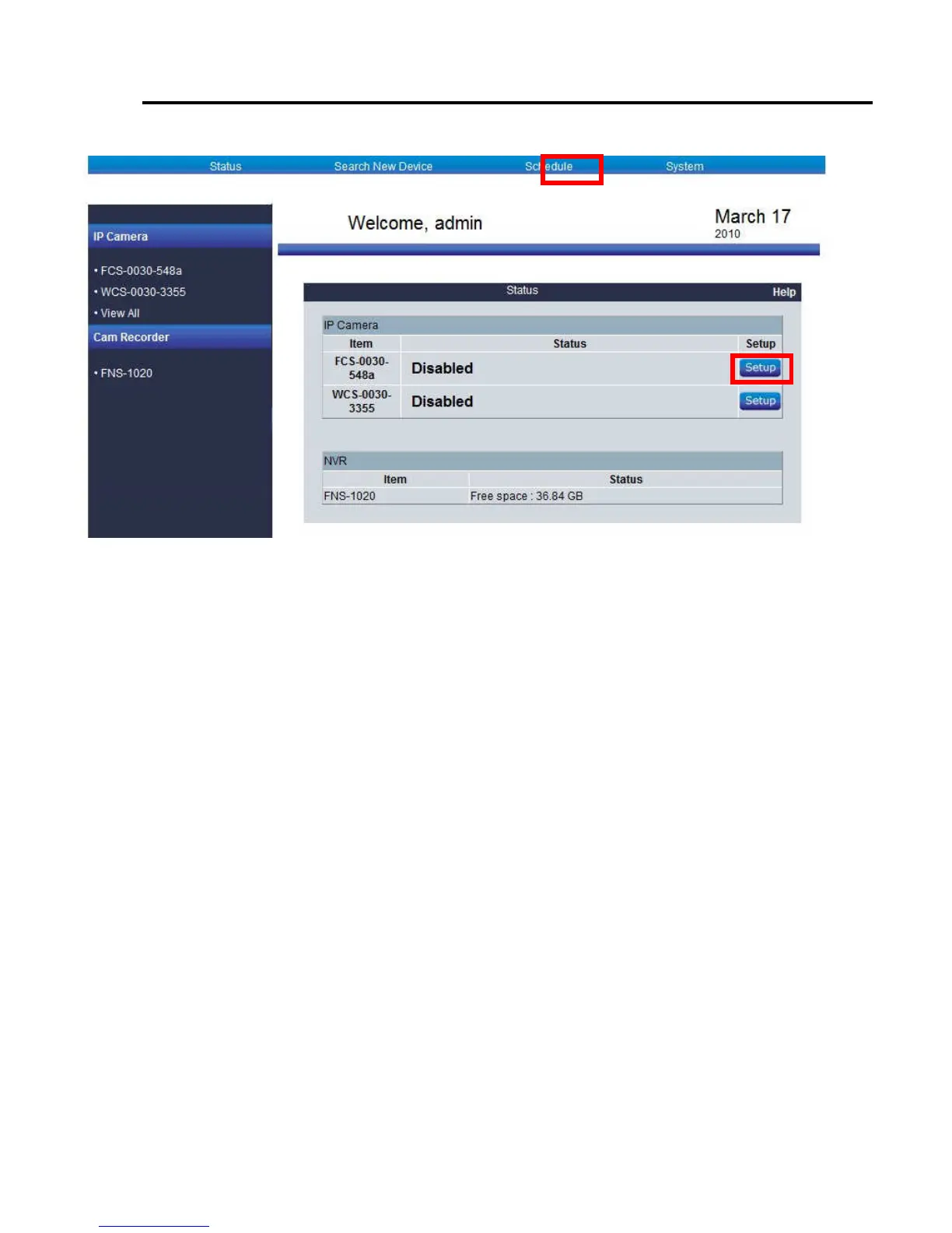 Click “Schedule” then Click “Setup” to enter schedule setting