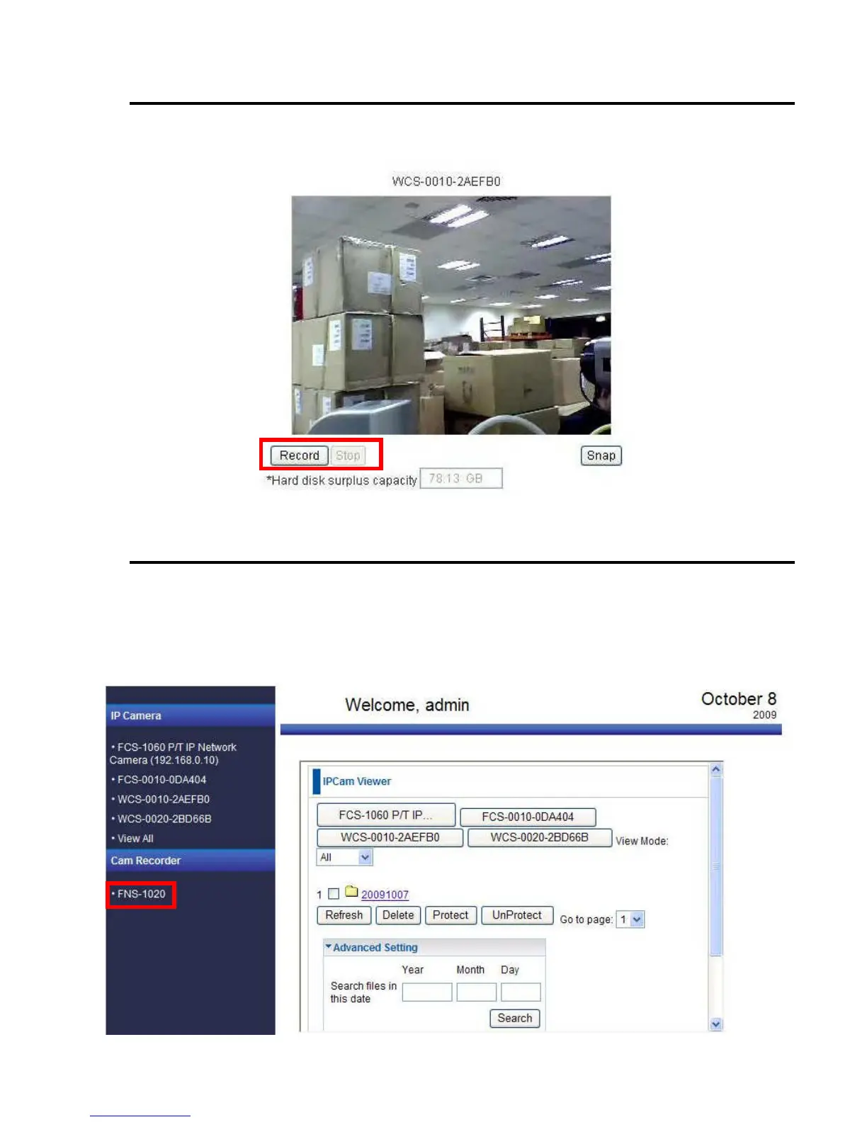 I. When you are viewing the IP cameras, you could press “Record” button to record video from IP