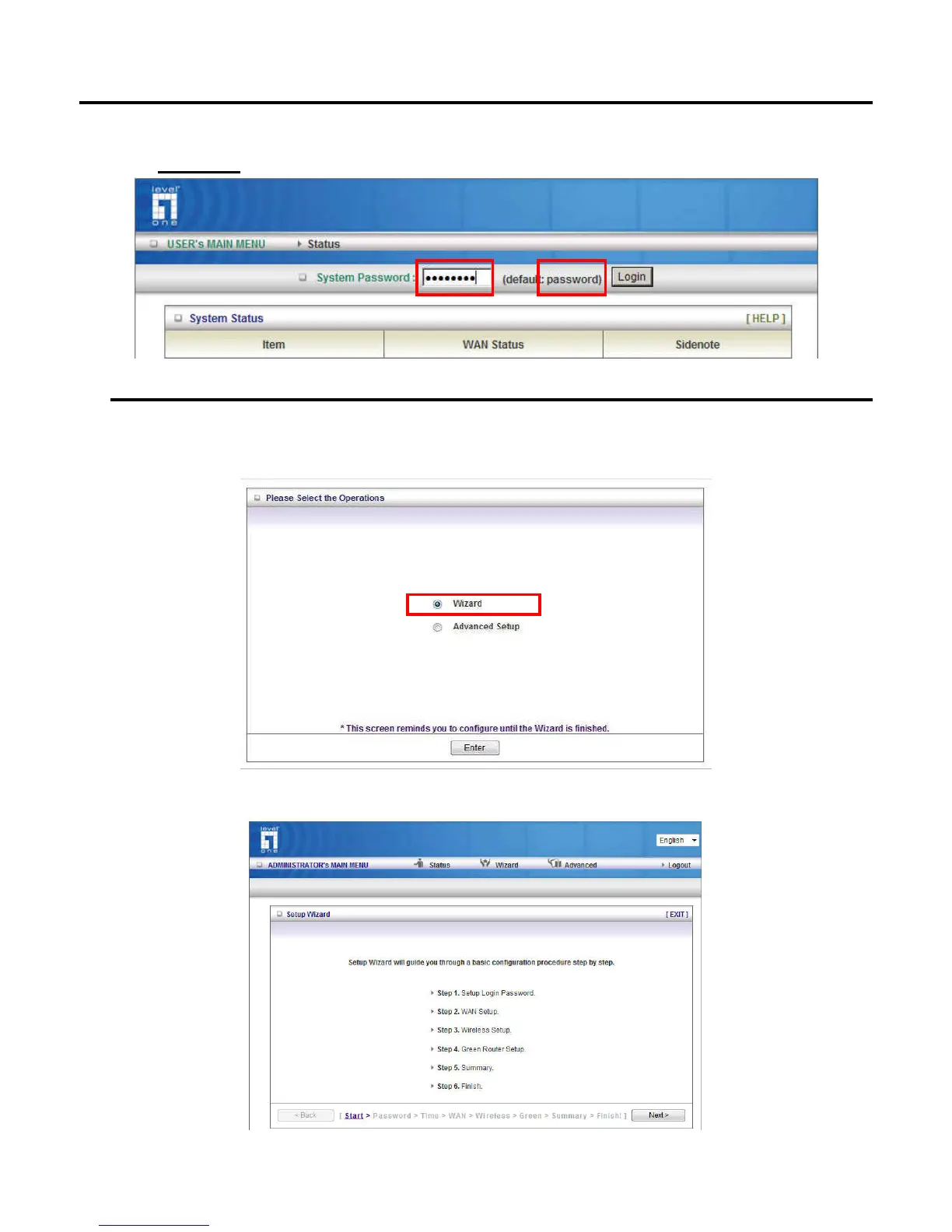 Setup Wizard will guide you through a basic configuration procedure step by step. Press Next to