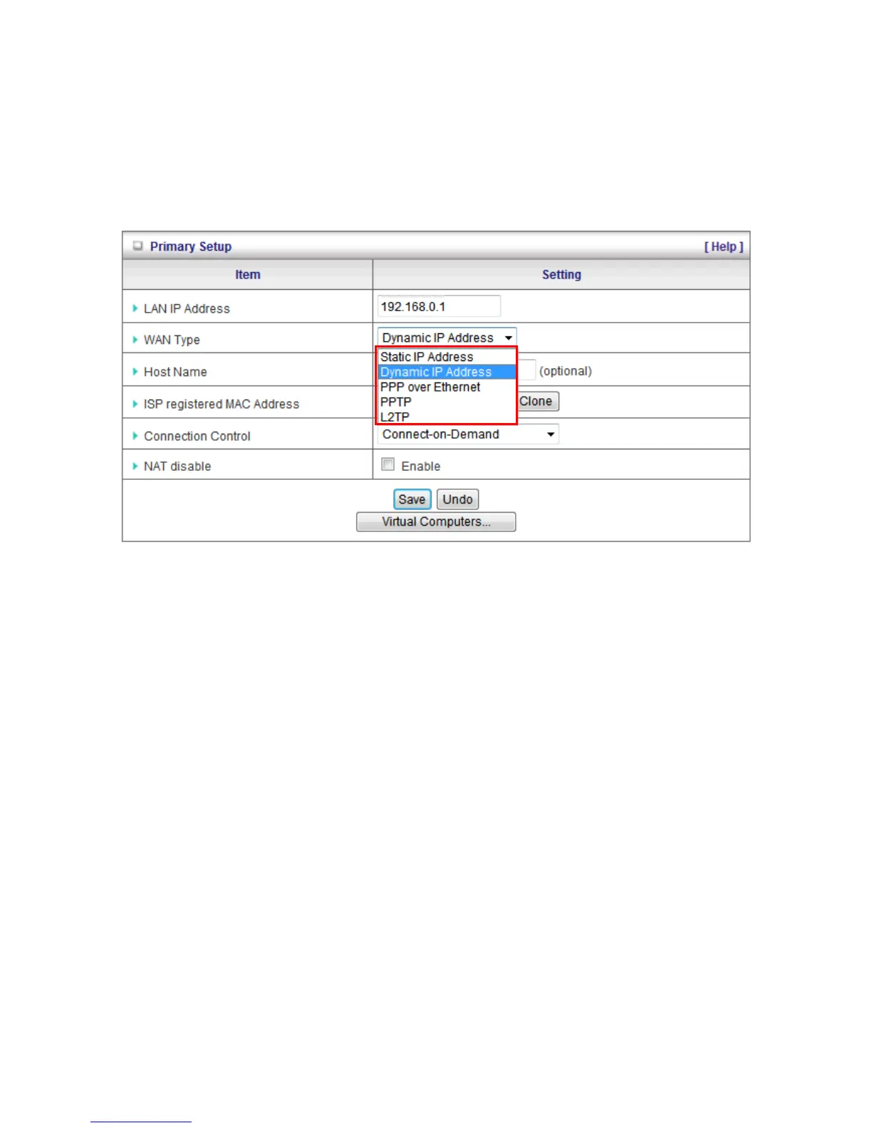 Dynamic IP Address: Obtain an IP address from ISP automatically.