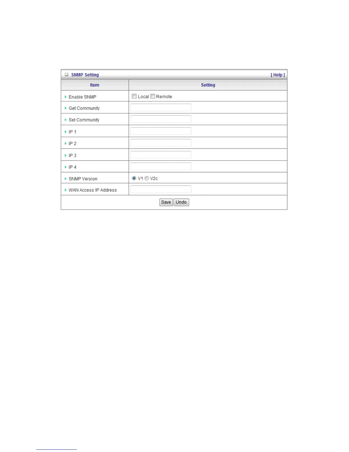 • Enable SNMP: You must check either Local or Remote or both to enable SNMP function. If