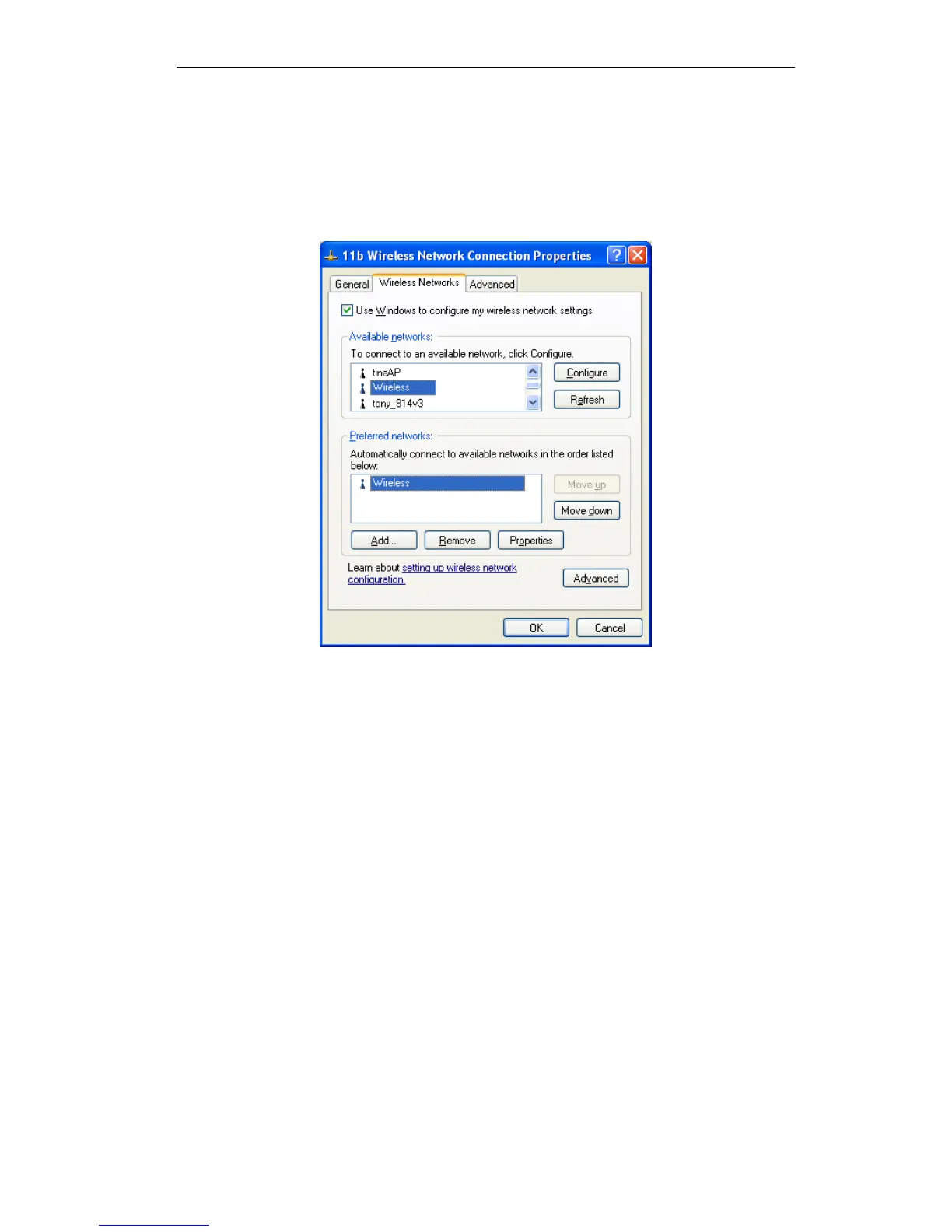 4. This wireless network will then be listed in Preferred Networks on the screen below.