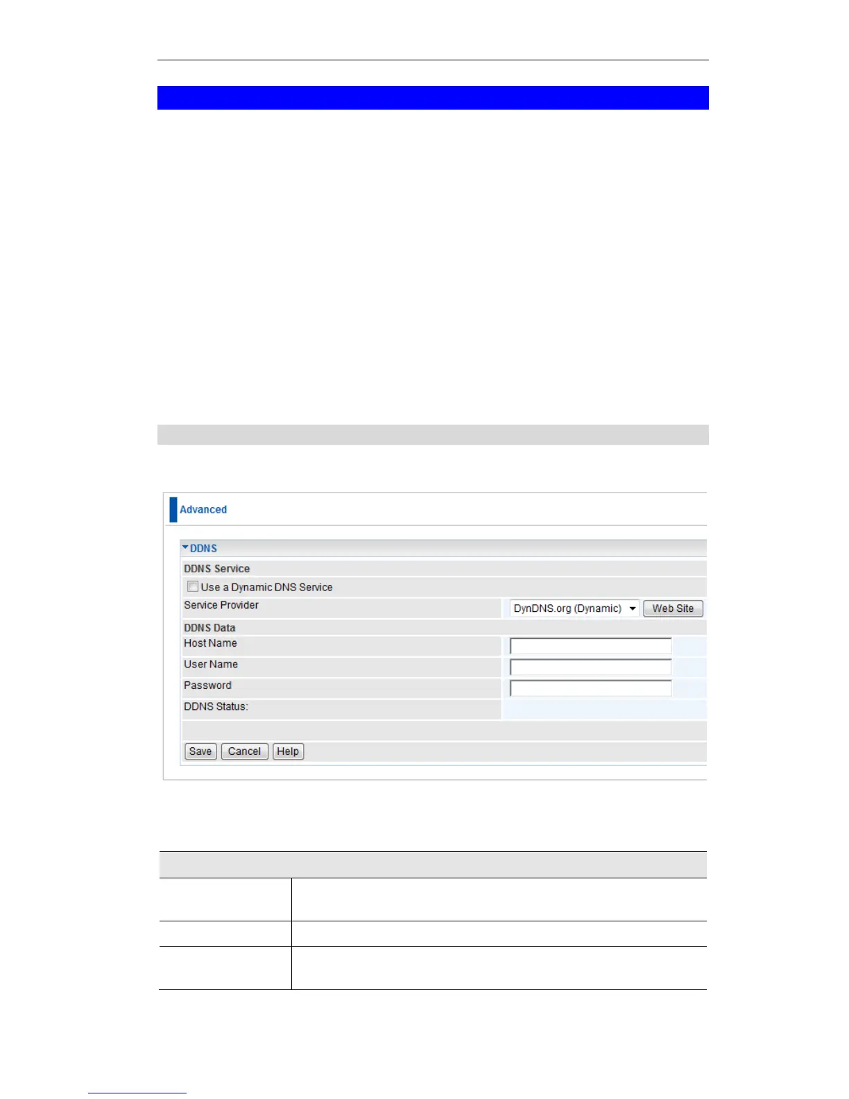 Select Advanced on the main menu, then Dynamic DNS, to see a screen like the following:
