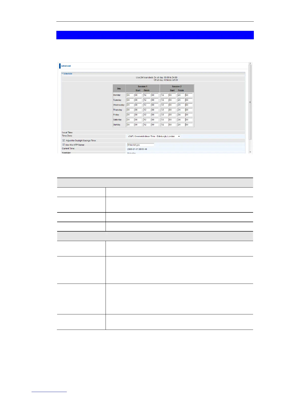 This displays the current time on the Wireless ADSL Router, at the
